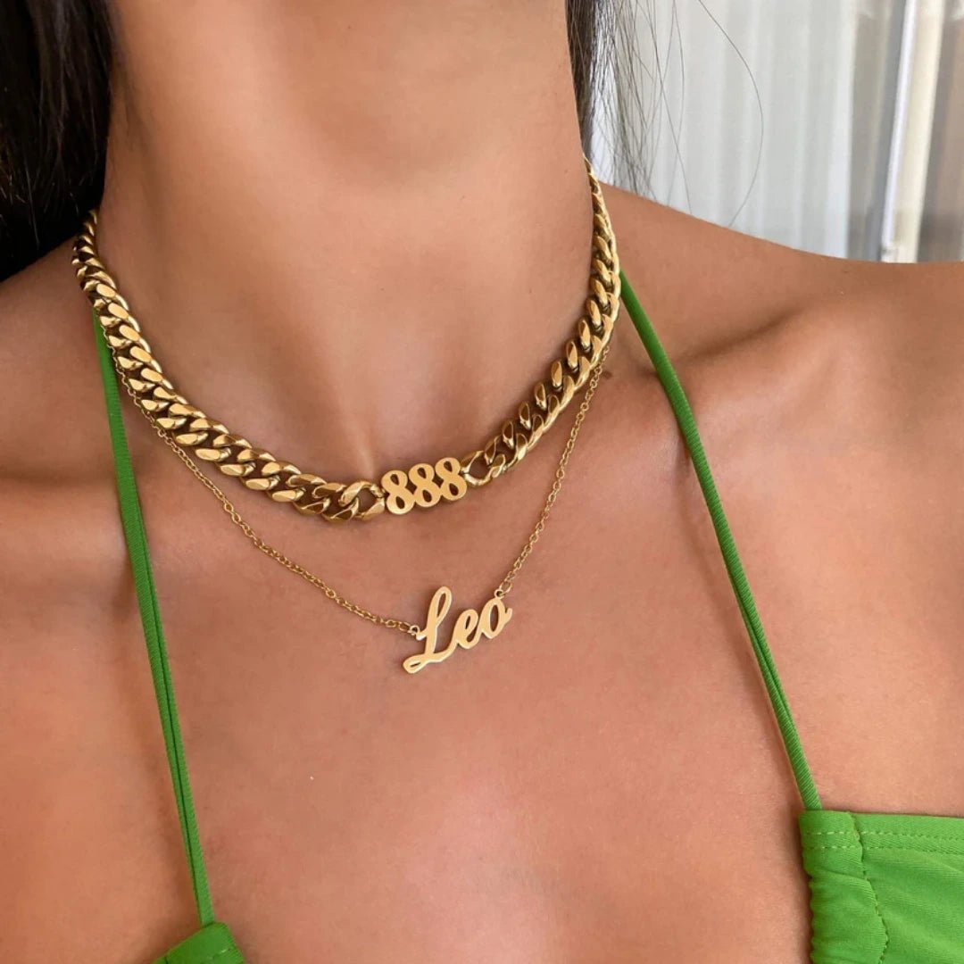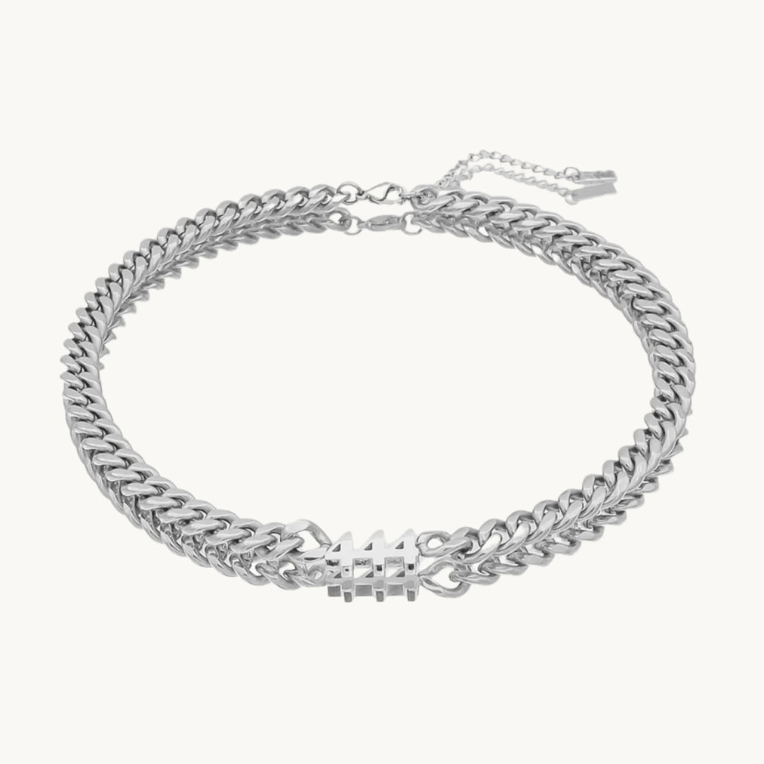 A simply stunning statement piece, featuring a thick cuban chain and a symbolic angel number of your choice. Our angel choker makes the perfect gift for you or someone special. Â Â The angel number pendant is suspended on a stunning thick cuban chain that adds texture and character to the necklace .The pendant hangs in the centre of the chain and attaches to the pendant on each side. The number pendant is smoothly polished, allowing it to glisten and your chosen angel number is set as the star of the show. You can select from 9 different numbers and choose between Gold & Silver. The necklace is fastened with a classic trigger clasp, making it super easy and comfortable to wear. Layer with your favourite pendant necklace or wear it alone as a statement piece. Â Make it a set and pair it with our Angel Number Anklet.Â
