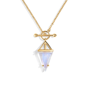 Featuring a genuine Moonela moonstone, the Elegant Moon Necklace showcases a striking 15 mm x 11 mm stone set in a beautifully crafted pendant. The pendant measures 25.95 mm x 13.80 mm and features a unique step-cut triangle design, adding dimension and sophistication to this statement piece.