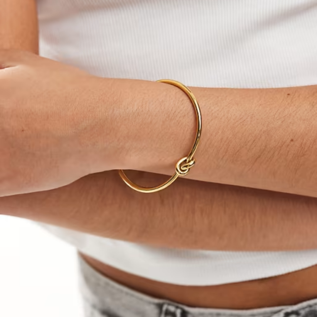 Symbolizing unity and strength, the Knot Cuff features a minimalist band accented by a single knot detail at the center. Its sleek, open-ended design makes it adjustable, ensuring a comfortable fit for any wrist. A timeless piece that can be worn daily or stacked with other bracelets for a layered look.